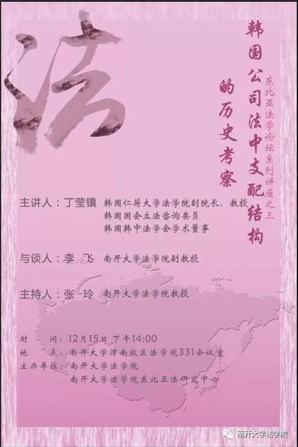 讲座预告 | 韩国公司法中支配结构的历史考察(韩国仁荷大学英国上市公司365副经理丁莹镇教授)