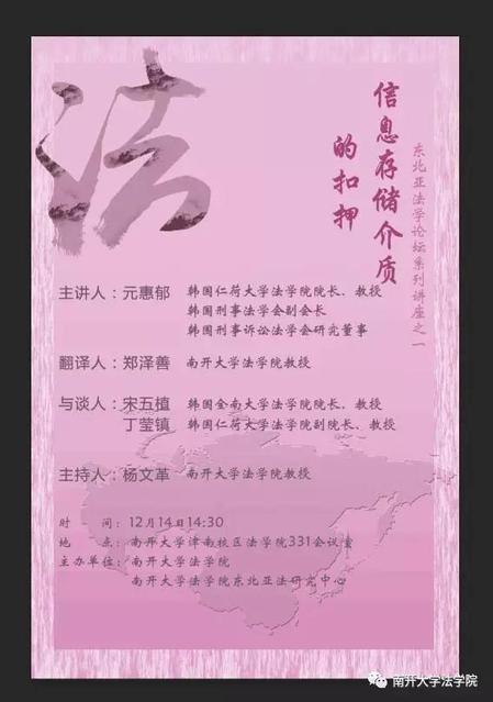 讲座预告 | 信息存储介质的扣押(韩国仁荷大学英国上市公司365经理元惠郁教授)